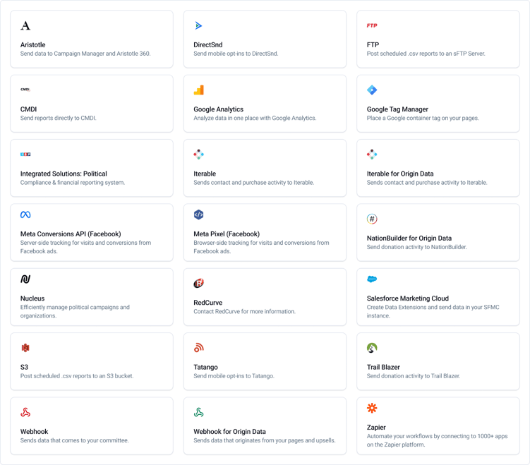 WinRed accounts have direct integrations with several campaign management platforms for compliance and accounting, allowing for easy donor data organization and reporting.