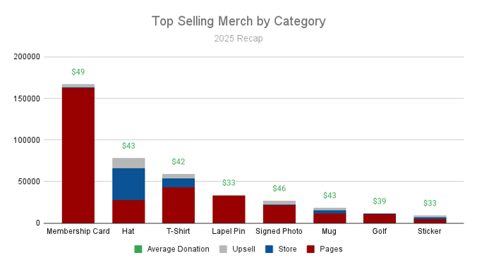 Republicans raised over $18 million in merchandise sales in 2025 alone, with membership cards, hats, and t-shirts ranking as the best-selling products.
