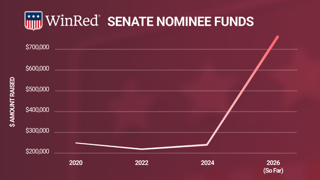 With the 2026 midterms still months away, Senate Nominee Funds on WinRed have already raised over $740k — a 213% increase over 2024.